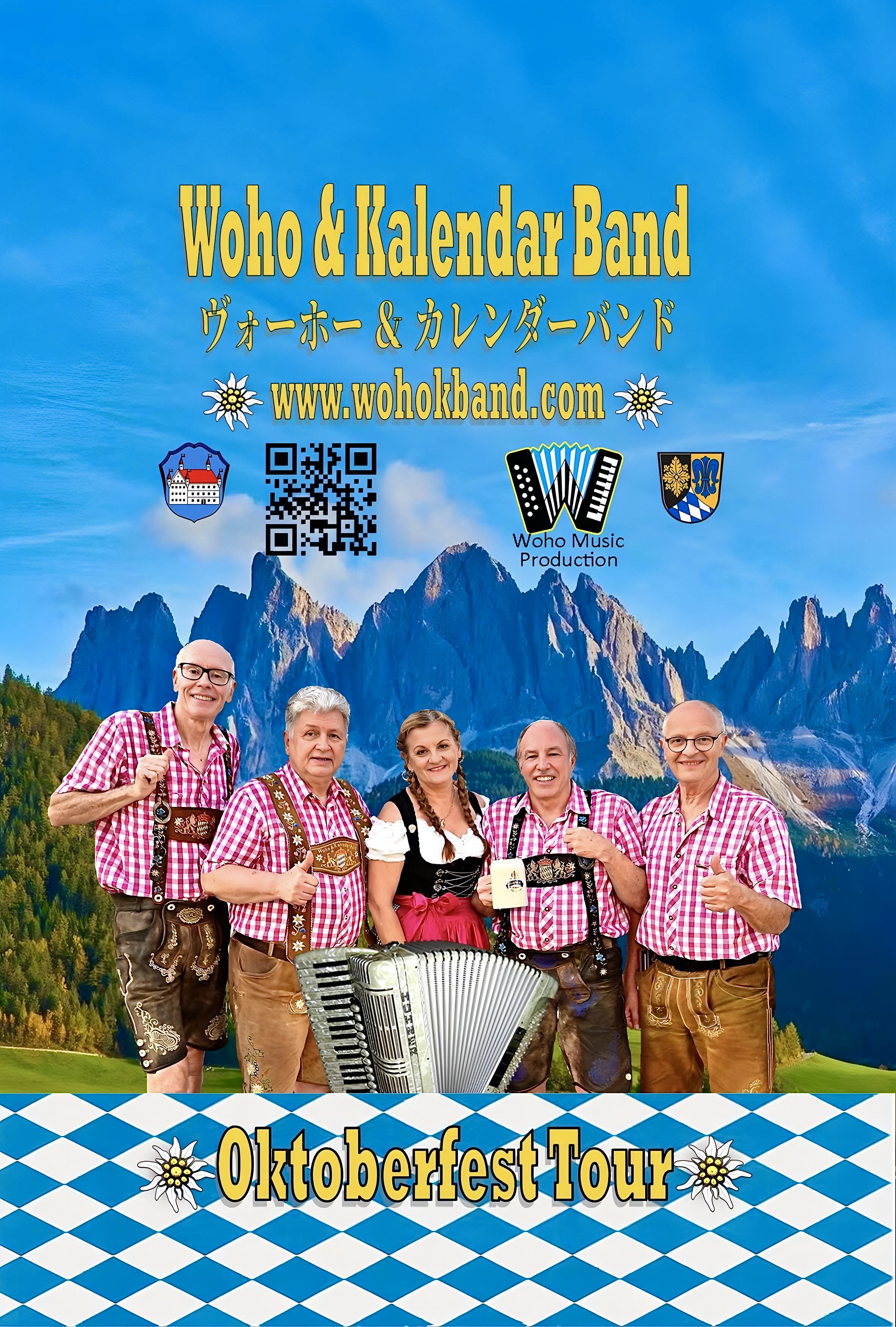 Welcome to the homepage of Woho Music Production and Woho & Kalendar Band, we are proud to anounce to start a new Website together. Woho & Kalendar Band met the first time 20 years ago at the Doitsu Mura event in Chiba/Japan where they played the same event but seperate stages. Woho played solo stages at the German Village, while Kalendar Band performed the Oktoberfest stages at the German Restaurant. on the final stage they decided to make a joint concert which worked out very well, this was the start of a great relationship in private and business. Since this time Woho Music Production hired the Kalendar Band every year twice for the Spring and Autum Oktoberfest tour in Japan. In 2010 we decided to increase the business and got the idea to create a website together. Next year